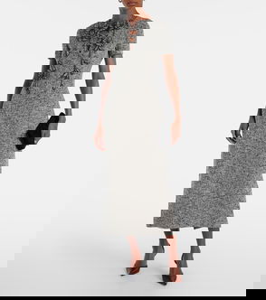 Floral-appliqué Cotton-blend Tweed Midi Dress