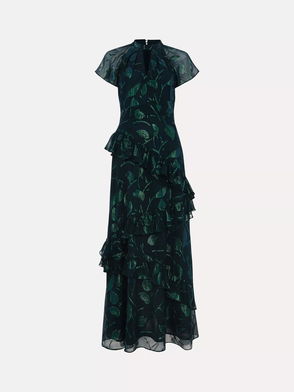 Haisley Leaf Print Ruffle Silk Rich Dress