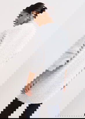Marianne Ribbed Longline Cardigan, Pale Grey
