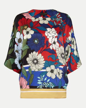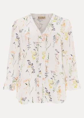 Pia Short Sleeve Floral Cotton Blend Blouse