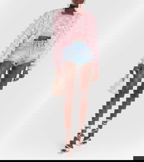 Pink & Burgundy Trim V-Neck Knitted Cardigan