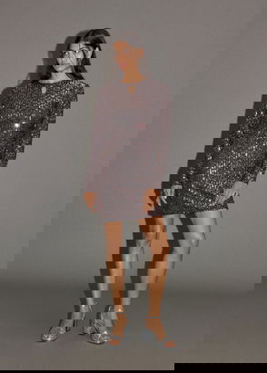 Stripe-Detail Collared Knit Dress In Dark Pink