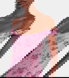Dream Bow Back Cinched Jacquard Mini Dress In Pink Floral
