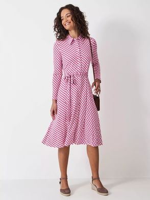 Emma Geometric Jersey Shirt Dress Containing LENZING™ ECOVERO™ Viscose, Dark Pink