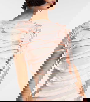 Wispa Gathered Side Strapless Midi Dress, Bright Pink
