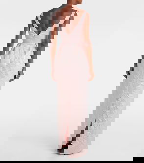 Embellished Thee-Quarter Sleeves Wool And Silk Midi Dress