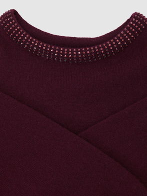 Wool-Blend Crystal-Neckline Jumper With Cashmere In Berry