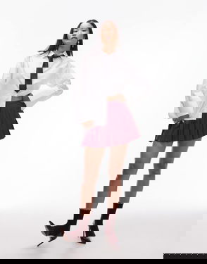 Tailored Pleated Mini Skirt With Adjustable Waist In Burgundy