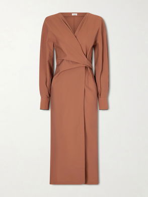 Embellished Cotton-Blend Midi Wrap Dress
