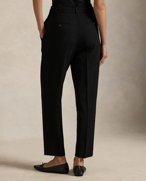 Belted Wool Pleated Tapered Trouser