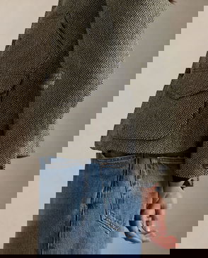 Suede-Trim Herringbone Jacket