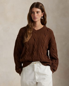 Cable-Knit Cotton V-Neck Jumper