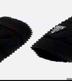 Triangle-Logo Wool And Nappa Leather Gloves