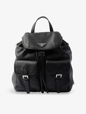Brand-Plaque Nylon And Saffiano-Leather Backpack