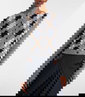 Triangle-Appliqué V-neck Wool Knitted Cardigan