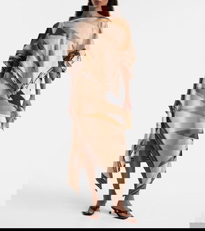 Hawaii Asymmetric Silk Satin Midi Skirt