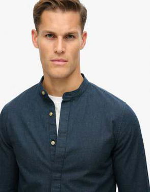 The Merchant Store - Indigo Grandad Shirt In Indigo Micro Texture
