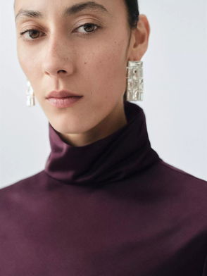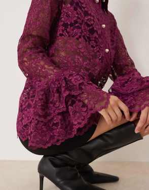 Dream Shirt With Oversized Ruffle Cuffs In Purple Shimmer Lace