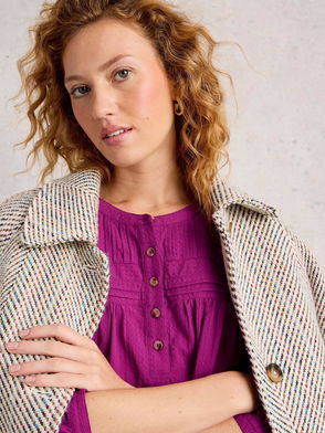 Wool Blend Donegal Fleck Roll Neck Jumper, Magenta