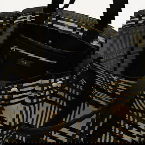 Addison Check Fabric Large Open Top Tote Bag In Latte