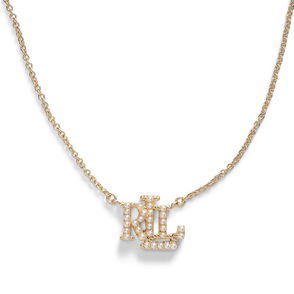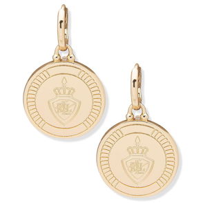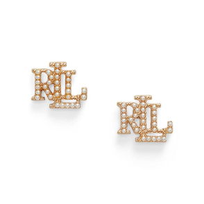 Lauren Gold Pave Logo Pearl Drop Earrings