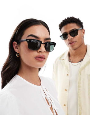 Clubmaster Classic Square Polarised Sunglasses In Black With Black Lens