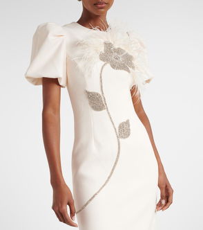 Bridal Plume Feather-Trimmed Crêpe Gown