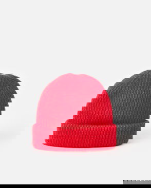 Red & Peach Striped Fluffy Ribbed Knitted Beanie Hat