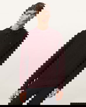 Cotton Blend Regular Fit Long Sleeve Polo Shirt, Ruby Red