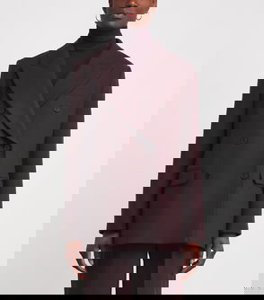 Wool Mock Neck Short Jacket In Burgundy Dark Red