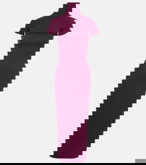 Interlock Colour-Block Button Dress In Burgundy