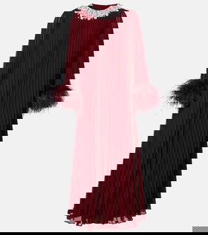 Embellished Feather-trimmed Chiffon Maxi Dress