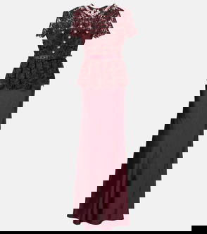 Belted Lace And Satin Maxi Dress