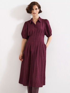 Yasmine Textured Shirt Midi Dress, Burgundy