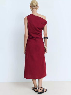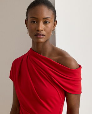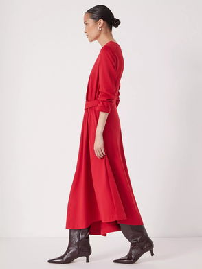Asymmetric Hem Jersey Dress, Scarlet Red