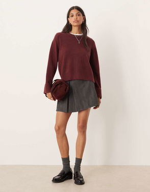 High Neck Relaxed Knitted Sweater In Burgundy Plum