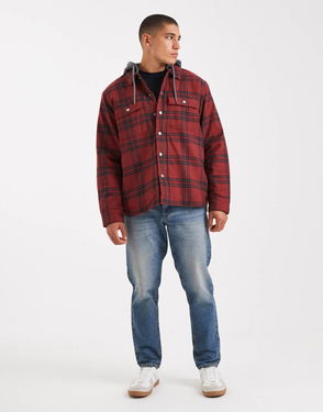 Francisco Sweat Hood Sherpa Lined Flannel Overshirt Jacket In Red