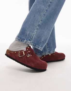 F-MODE Jewel-Deluxe Leather Flatform Cross Slides