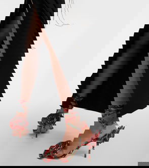 Floral-appliqué Satin Slingback Sandals