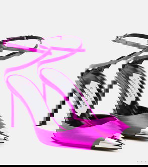 Ruffle-trimmed Satin Slingback Pumps