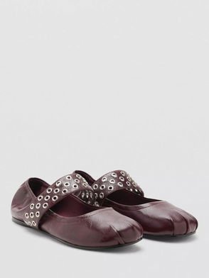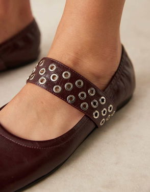 Eyelet Strap Mary Jane Shoes, Dark Red