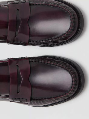 Luisa Leather Gathered Moccasins, Dark Red