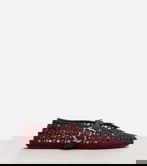 Leather Eyelet Strap Toe Detail Flat Shoe In Cherry Red