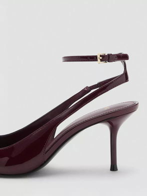 Faux Leather Pointed Slingback Heeled Shoe In Burgundy