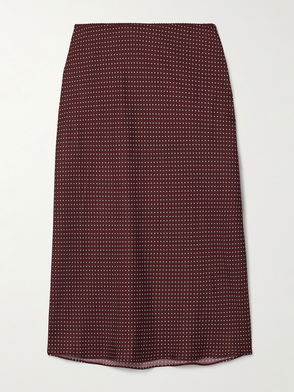 Pleated Printed Silk Crepe De Chine Midi Skirt