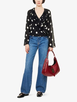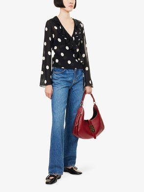 X Nara Smith Polka-Dot V-Neck Woven Blouse
