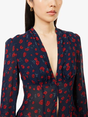 X Nara Smith Rose-Print V-Neck Woven Blouse