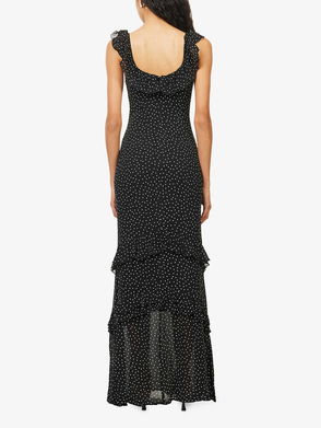 X Nara Smith Ruffle Polka-Dot Woven Midi Dress