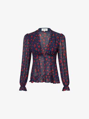 X Nara Smith Rose-Print V-Neck Woven Blouse