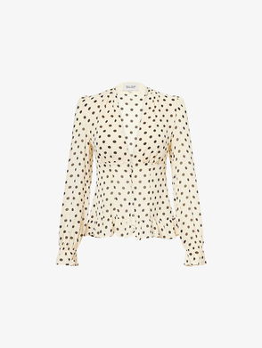 X Nara Smith Polka-Dot V-Neck Woven Blouse
